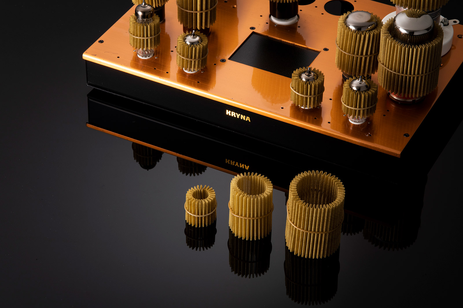 「HGS:ホログラフィックサウンド」を実現するために追求された、インシュレーターなどKRYNAのオーディオアクセサリー。